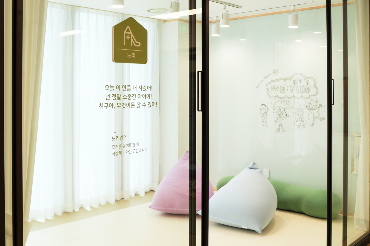 천천히 크게 자라는 아이들을 위한 마을 위빌리 키즈 센터의 BI 제작과 인테리어 디자인 및 시공