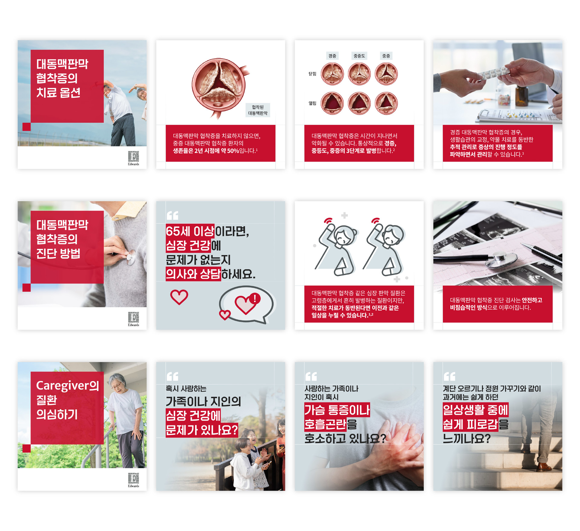심장 판막 질환 홍보용 카카오채널 카드뉴스 디자인, 총 10편